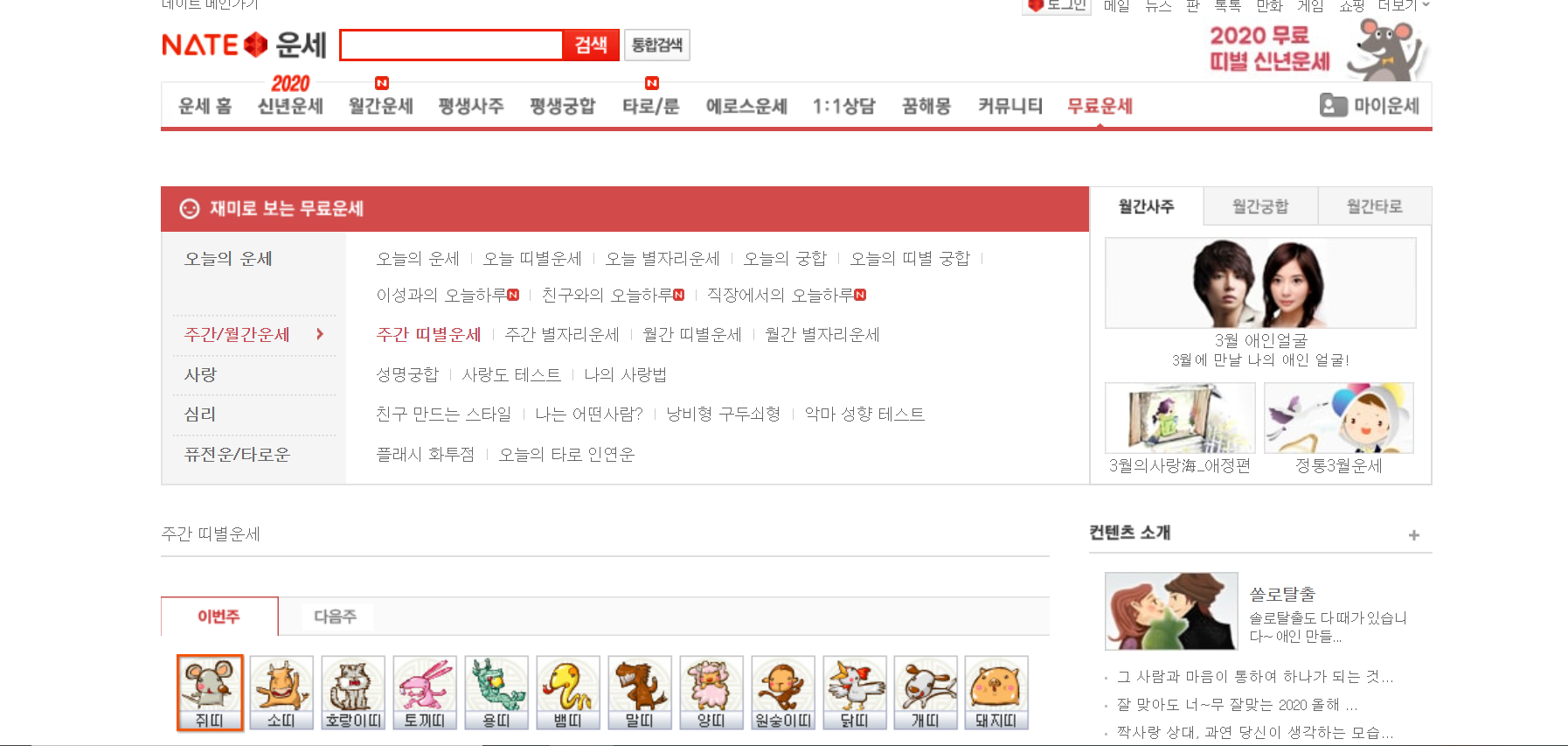 띠별궁합 띠별운세 무료운세 사이트 네이트운세 ~!