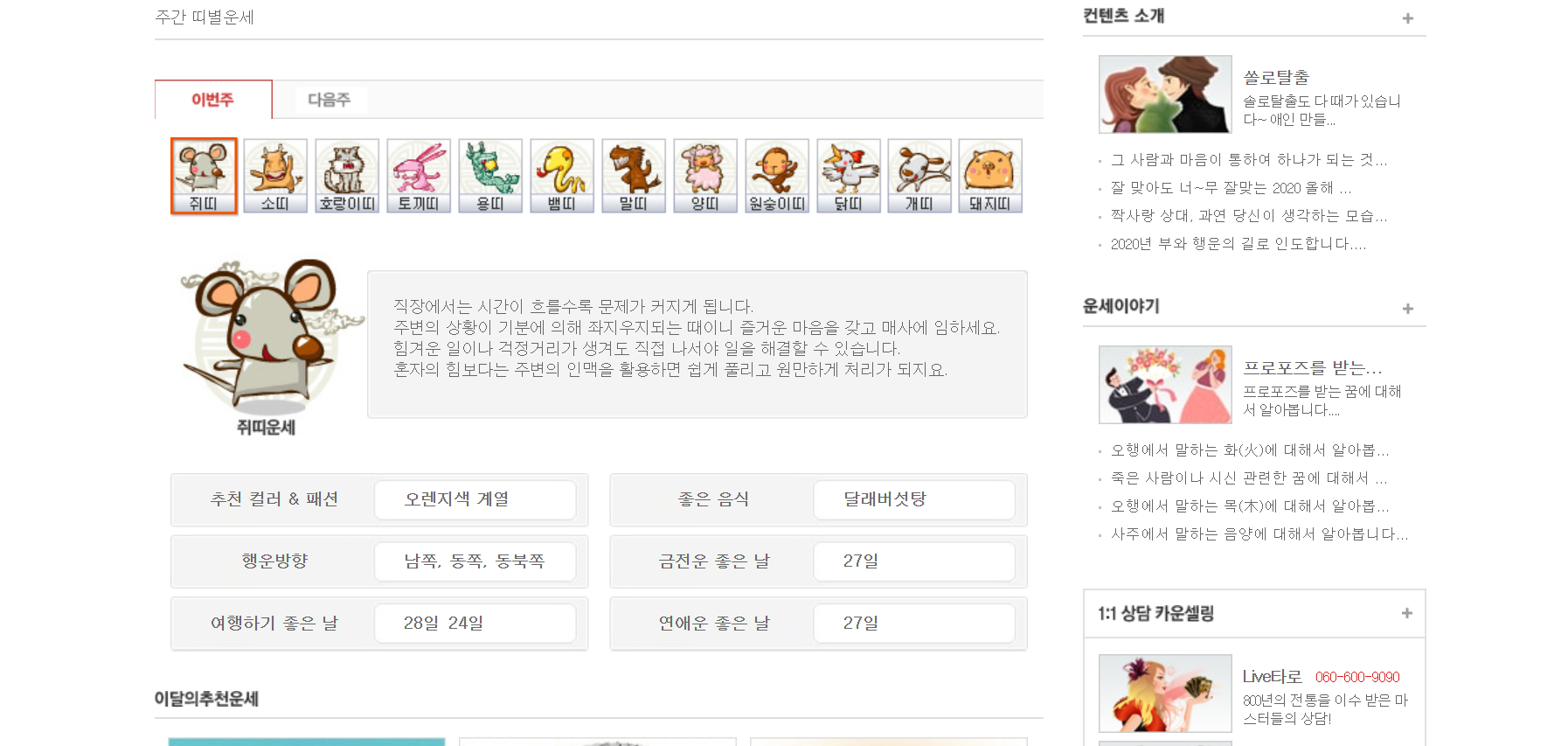 주간띠별운세 월간띠별운세 띠별궁합 보기 괜찮아요..