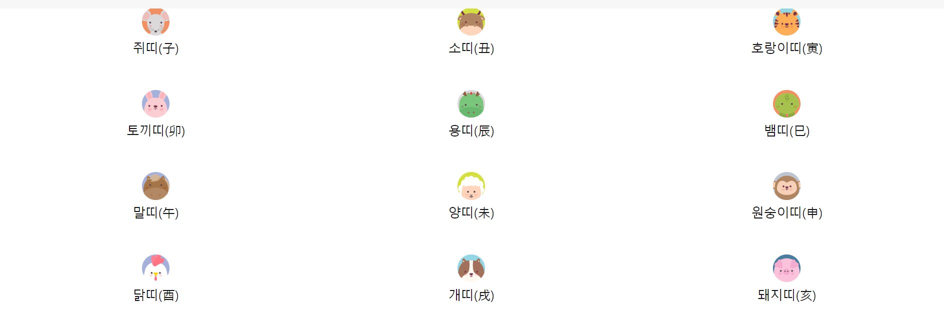 띠별 그림 누르시면 나이대별 운세 풀이가 제공되네요..