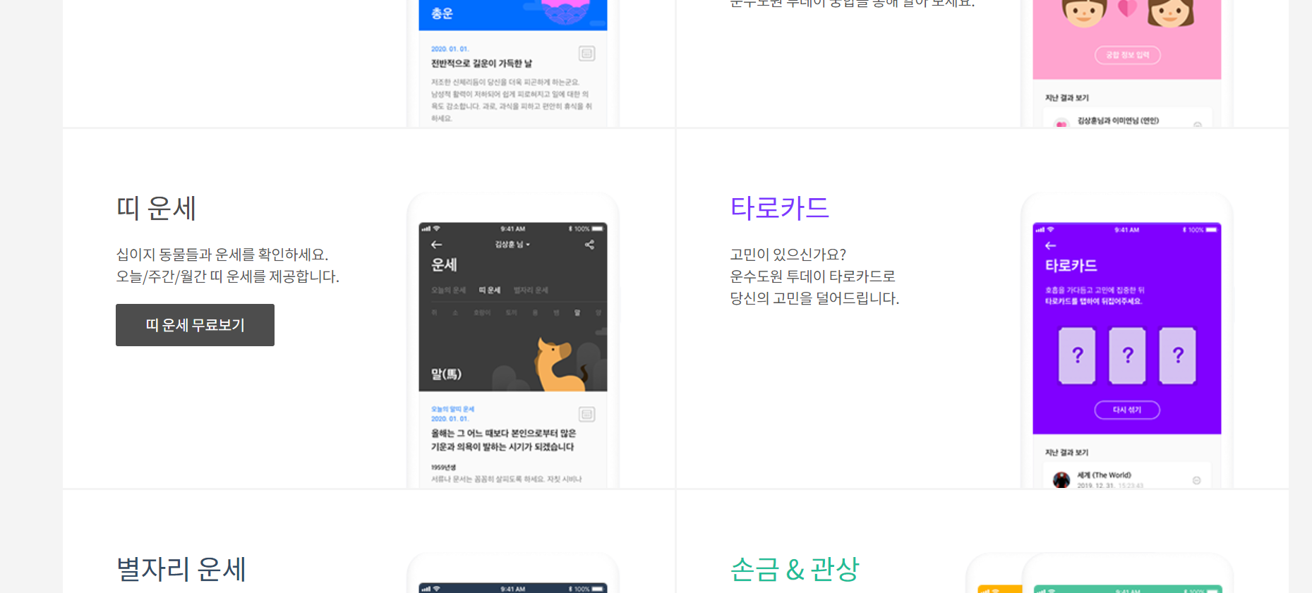다양한 운세풀이가 준비돼 있어요