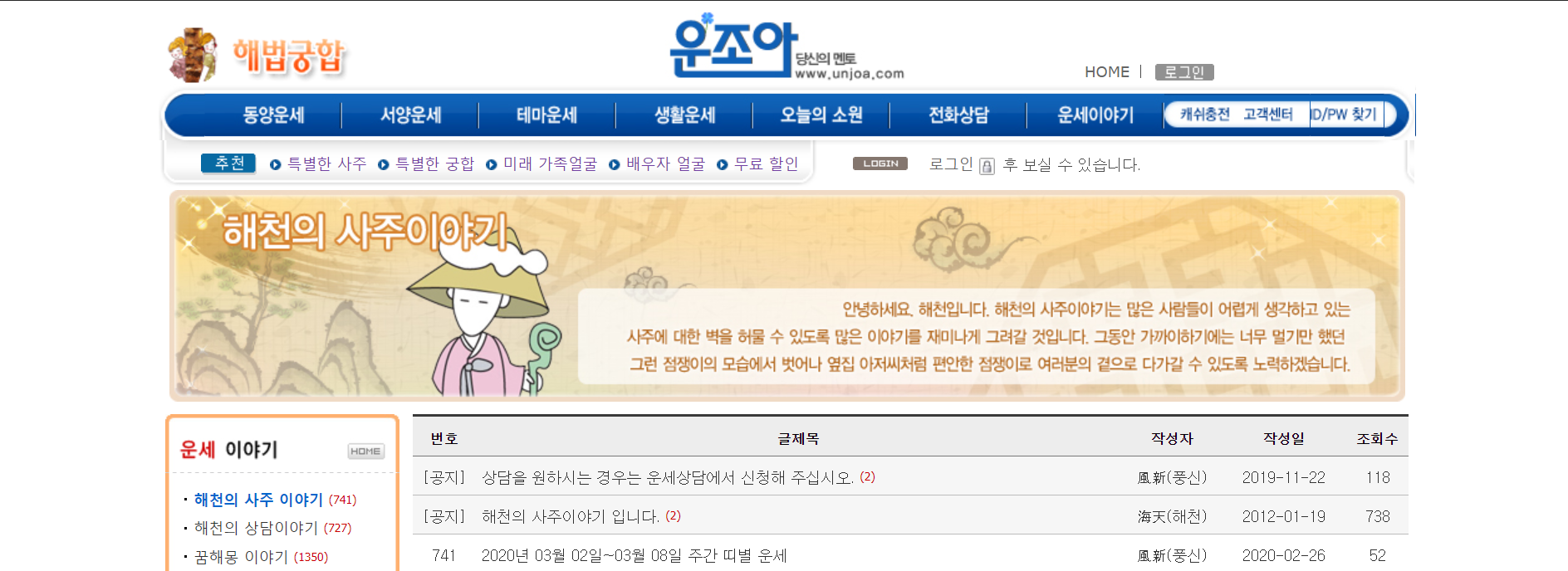 [운세이야기] 메뉴 들어가셔서