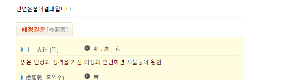 인연운세풀이에는 혼인대길 귀인수 가택운의 입장에서 운세를 풀이해준다고요..