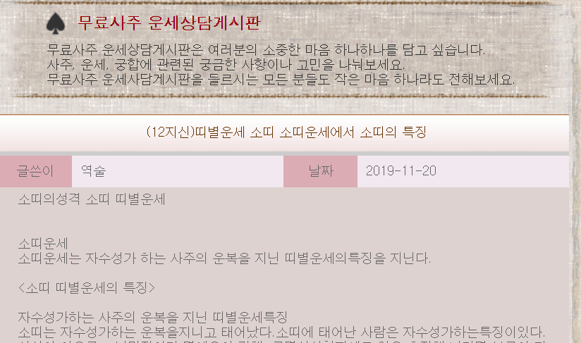 띠별 무료 운세를 보려면 무료 사주 운세상담게시판에 들어가셔야 해요