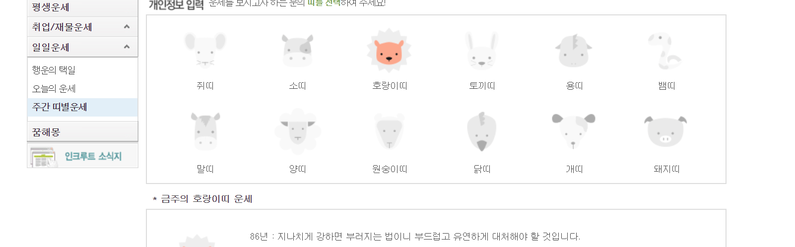 [무료운세]띠별운세/인크루트 주간운세/호랑이띠 범띠 본문