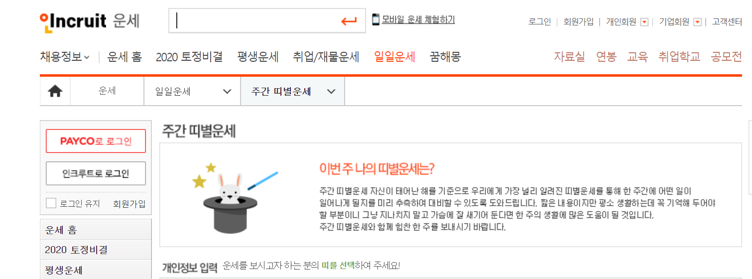 오늘의 무료 운세 사이트는 인크루트 운세~!