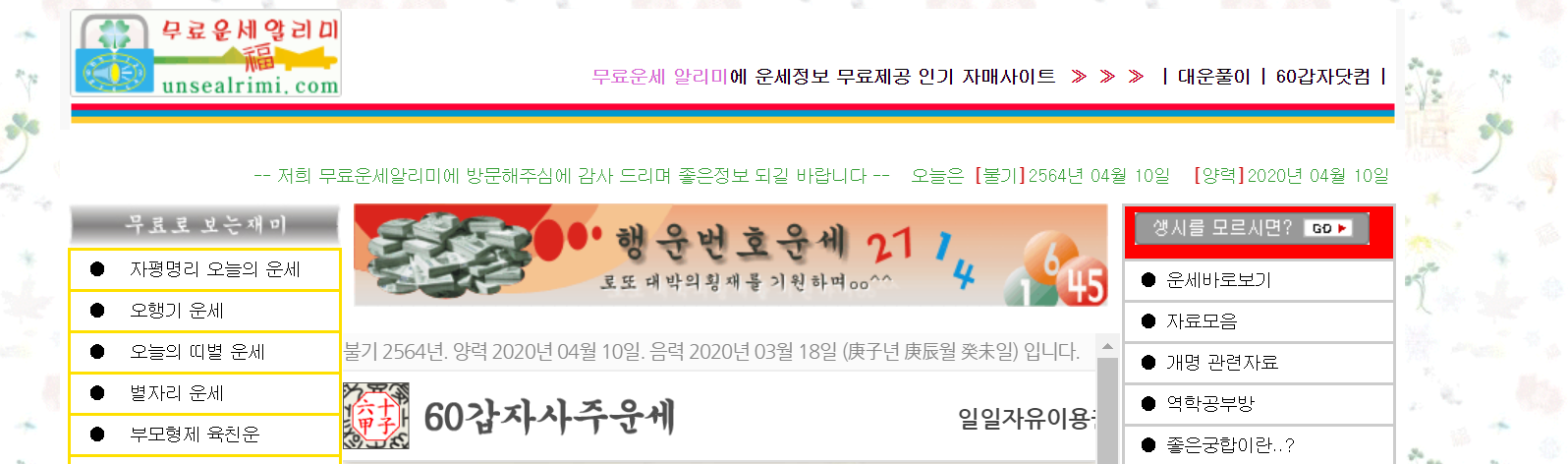 [무료 운세]프리사주/행운의로또번호/체질운세/풍수운세/내아이운세