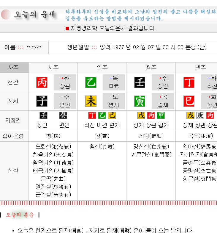 매일매일 십성을 비교해서 흉운 길운 풀이해주고 있네요..