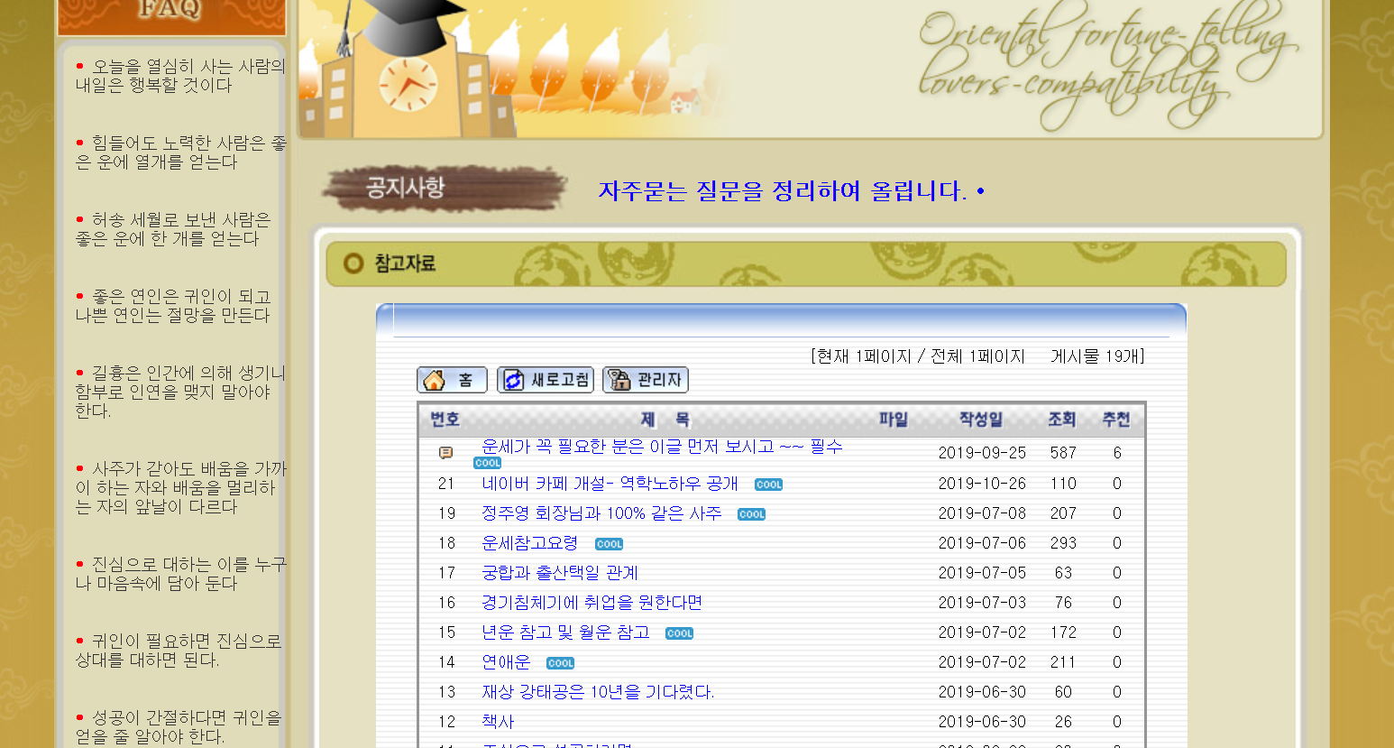 | [무료 운세]운세박사/사주정보/오늘의운세/사상궁합/사주뛰어넘기 (1) | 2020.02.28 |