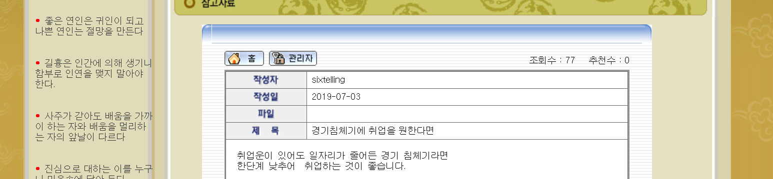선생님이 참고자료에 취업운 애정운 궁합 출산택일 관계..