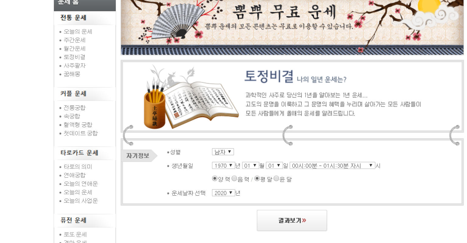 [무료 운세]뽐뿌/전통운세/사주팔자/토정비결/전통궁합 본문