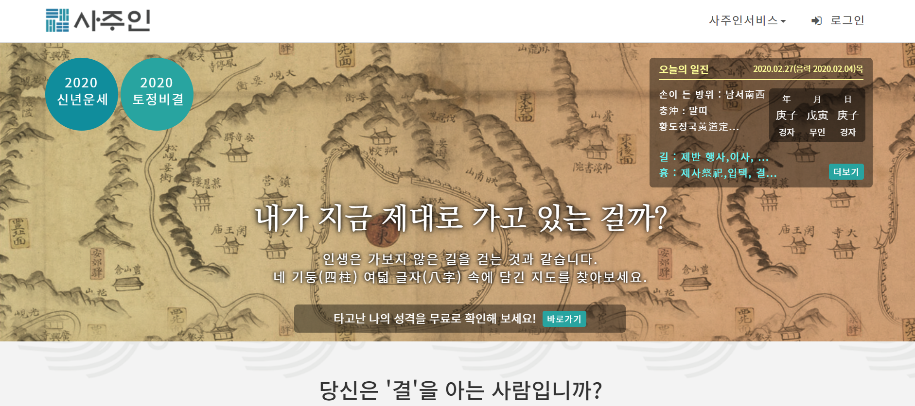 | [무료 운세]운세의신/토정비결/명품사주/신통방통궁합 (0) | 2020.02.27 |