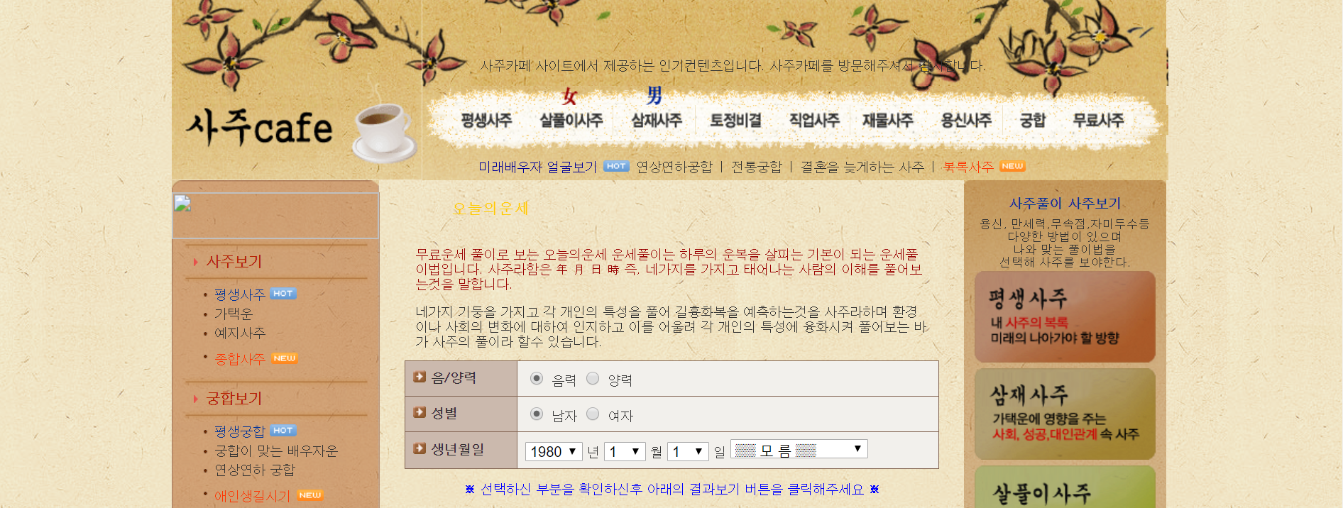 [무료 운세]사주카페/띠별운세/궁합/시험운/건강운/이름풀이 본문
