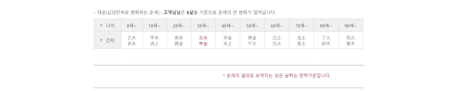 무엇보다 대운도 나와 있어서 보기 편리하네요