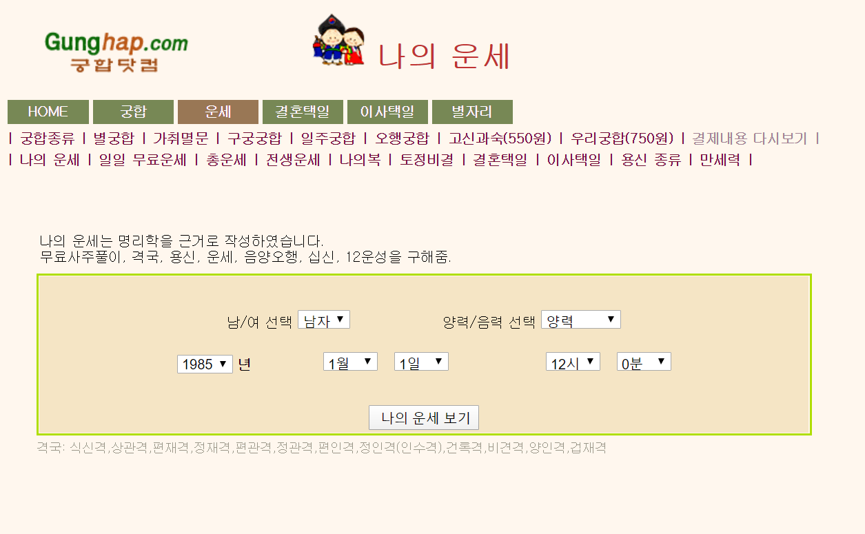 [무료 운세]궁합닷컴/우리궁합 나의운세/사주팔자/토정비결/격국 본문