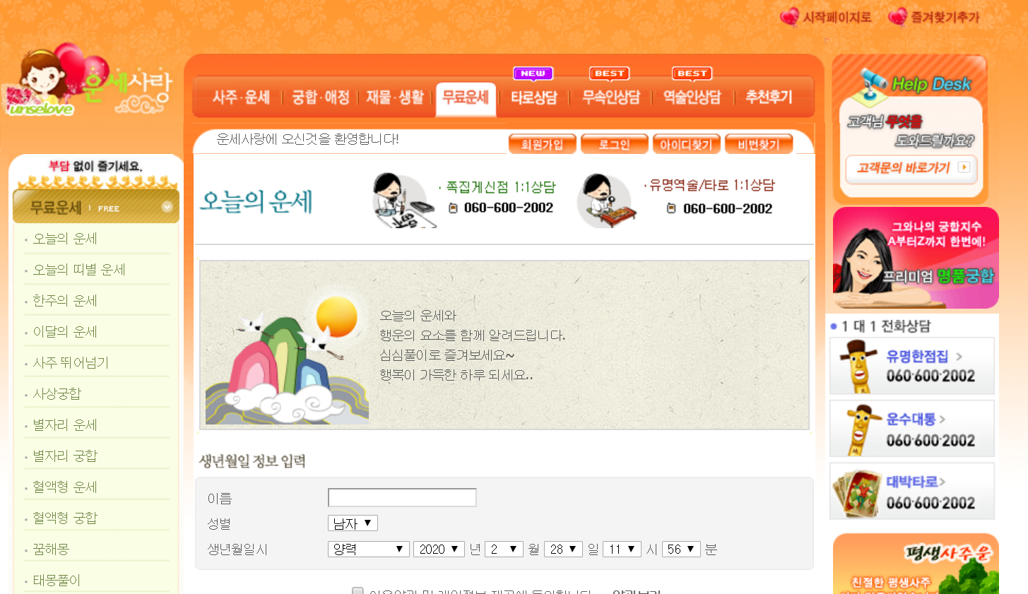재미로 보는 무료 운세도 있어요^^