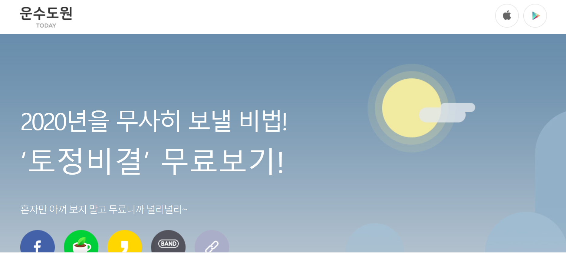 2020년 토정비결 무료 보는 운세 사이트 운수도원~!