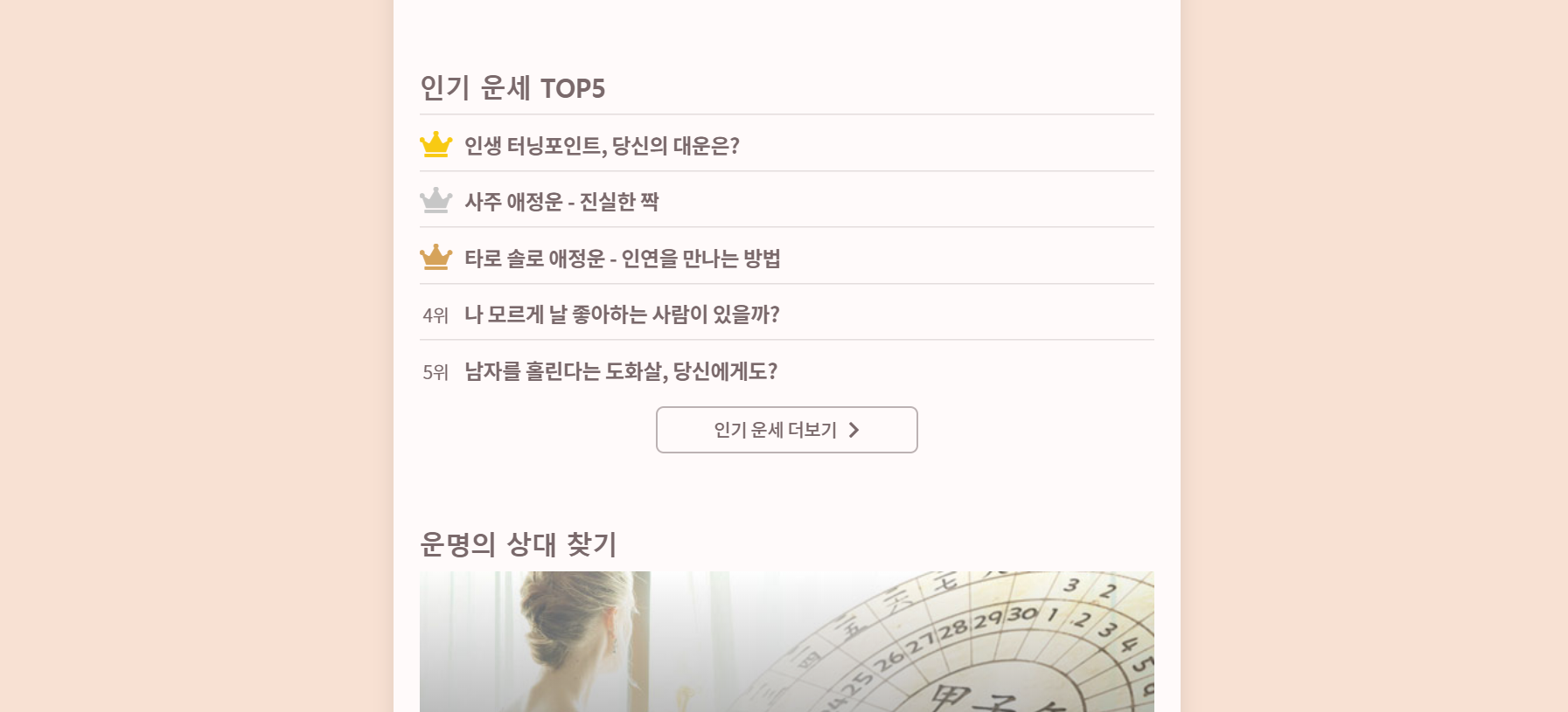 인기운세에는 대운 애정운 인연운 도화살 짝사랑