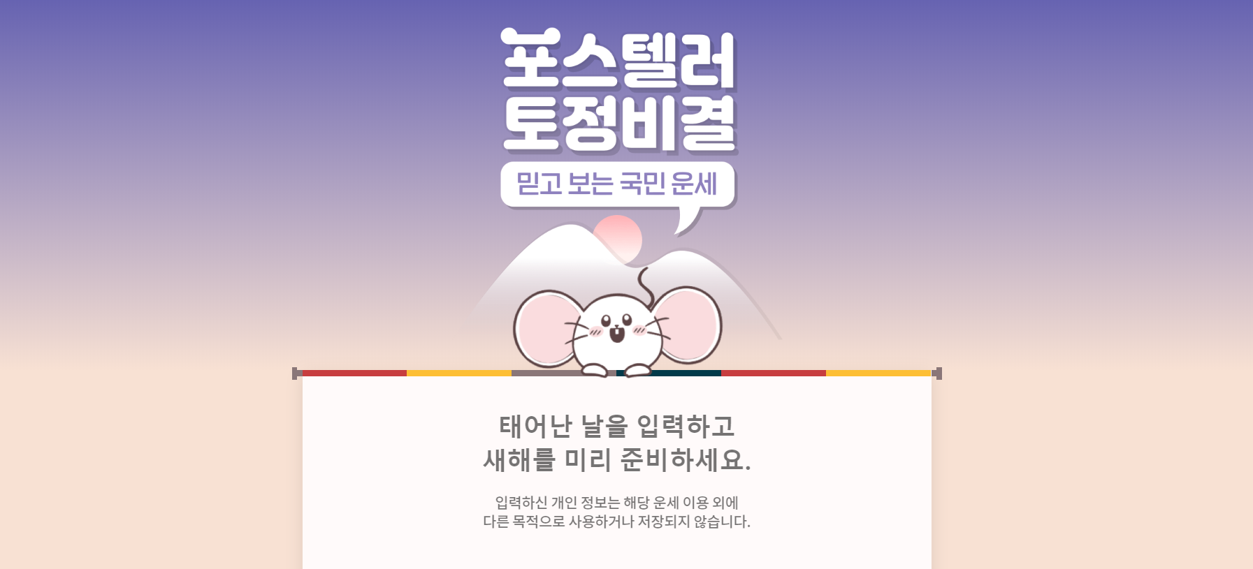 [무료 운세]포스텔러/토정비결/이벤트/도화살/짝사랑/월운 본문