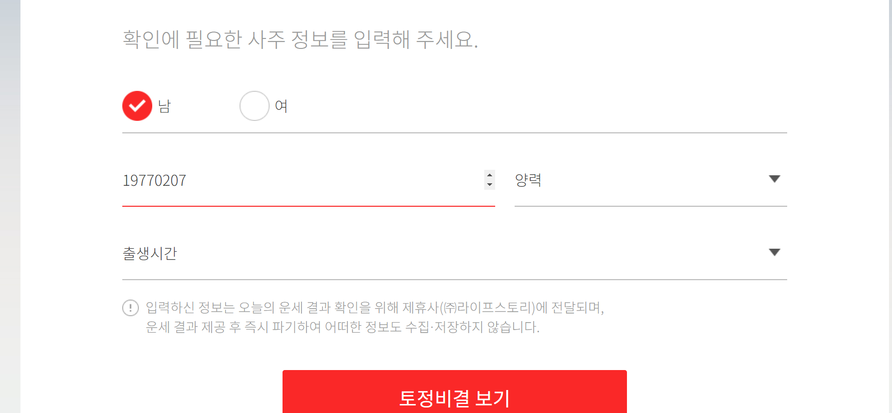생년월일 출생시 입력하고